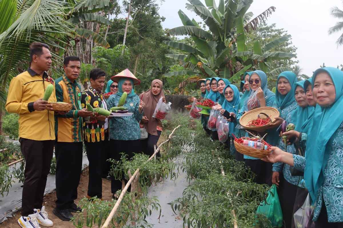 KOMINFO. MUNA BARAT. GO. ID Ketua TP PKK Muna Barat Rika Purwaningsih Darwin bersama anggota melakukan panen cabai di halaman Kantor Camat Tiworo Kepulauan pada Kamis (6/11/2025). Kegiatan panen dihadiri oleh Wakil Ketua I TP-PKK, Jajaran Ketua Bidang, Ketua Pokja, Camat Tiworo Kepulauan, Ketua PKK Kecamatan, serta seluruh pengurus.